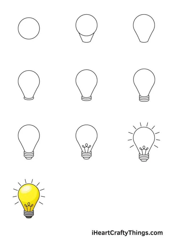 This is a wonderful cartoony sketch for adults and kids alike. Have some fun sketching different kinds of lightbulbs. Maybe the fitting is different, or it has a funny-shaped bulb, or perhaps it blew and the filament snapped? There are so many ideas to play around with!
