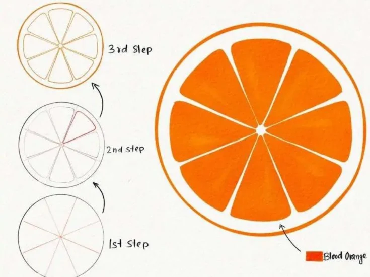 This tutorial is actually three lessons in one. The basic version has you drawing a circular orange slice complete with segments. Once you’ve mastered that, attempt the half orange! This nifty sketch looks remarkably 3D using only a couple of circles! If you’re feeling brave, try the complete orange with leaves!