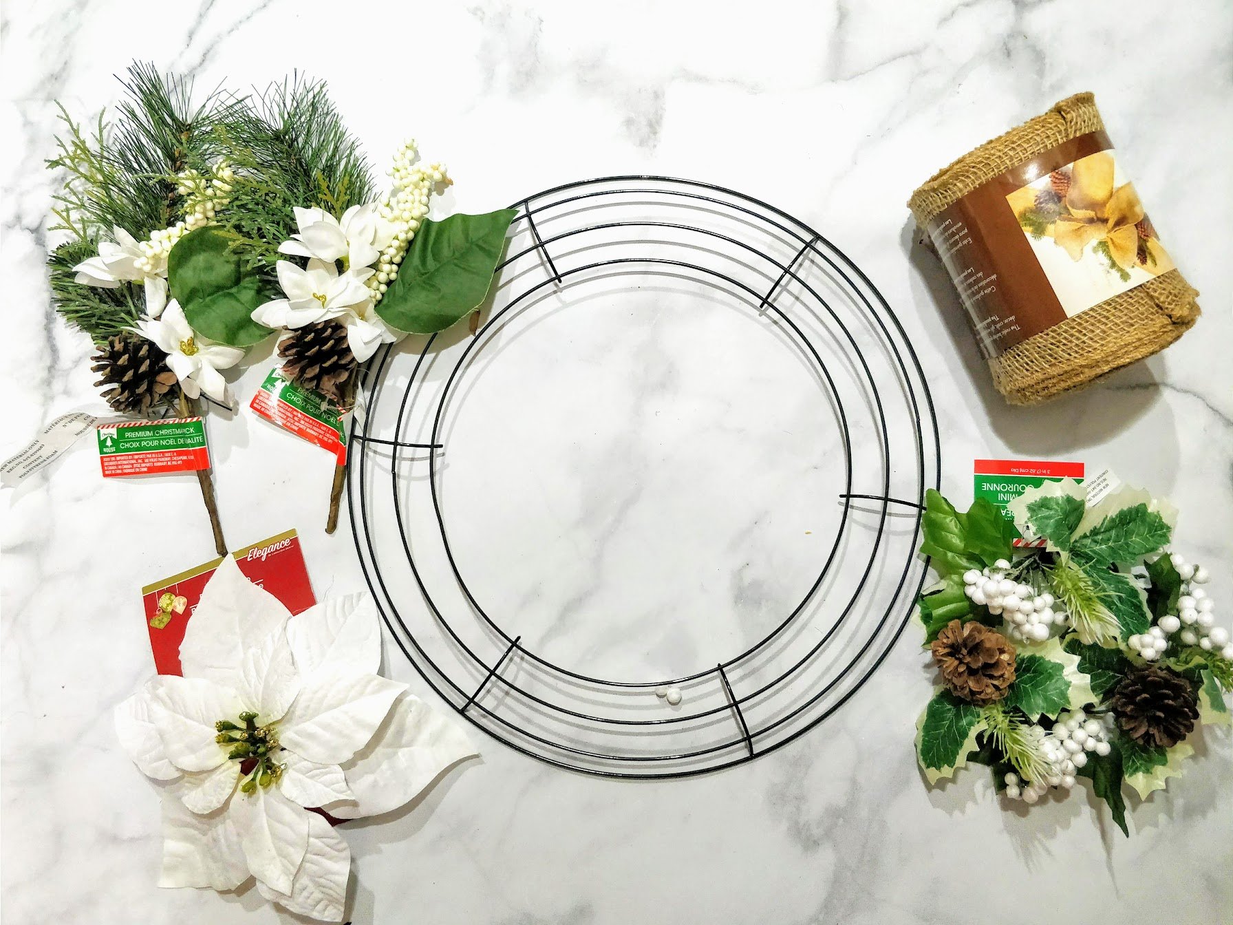 For this DIY, I ended up finding most my items from Dollartree and was able to complete this DIY wreath for $8 (Canadian).