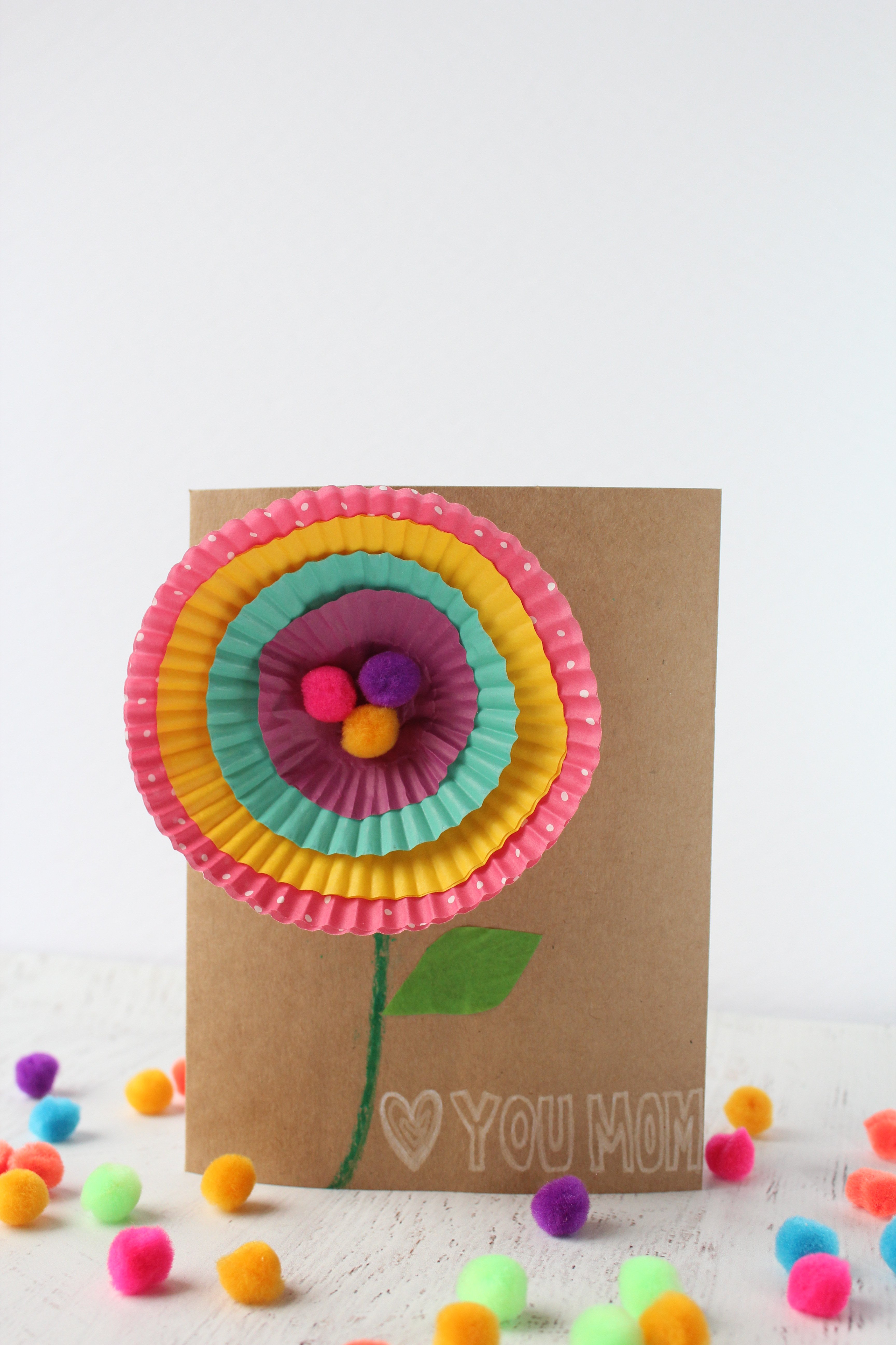 There you have it, an easy and beautiful DIY mothers day card – using simple cupcake liners and pom poms.