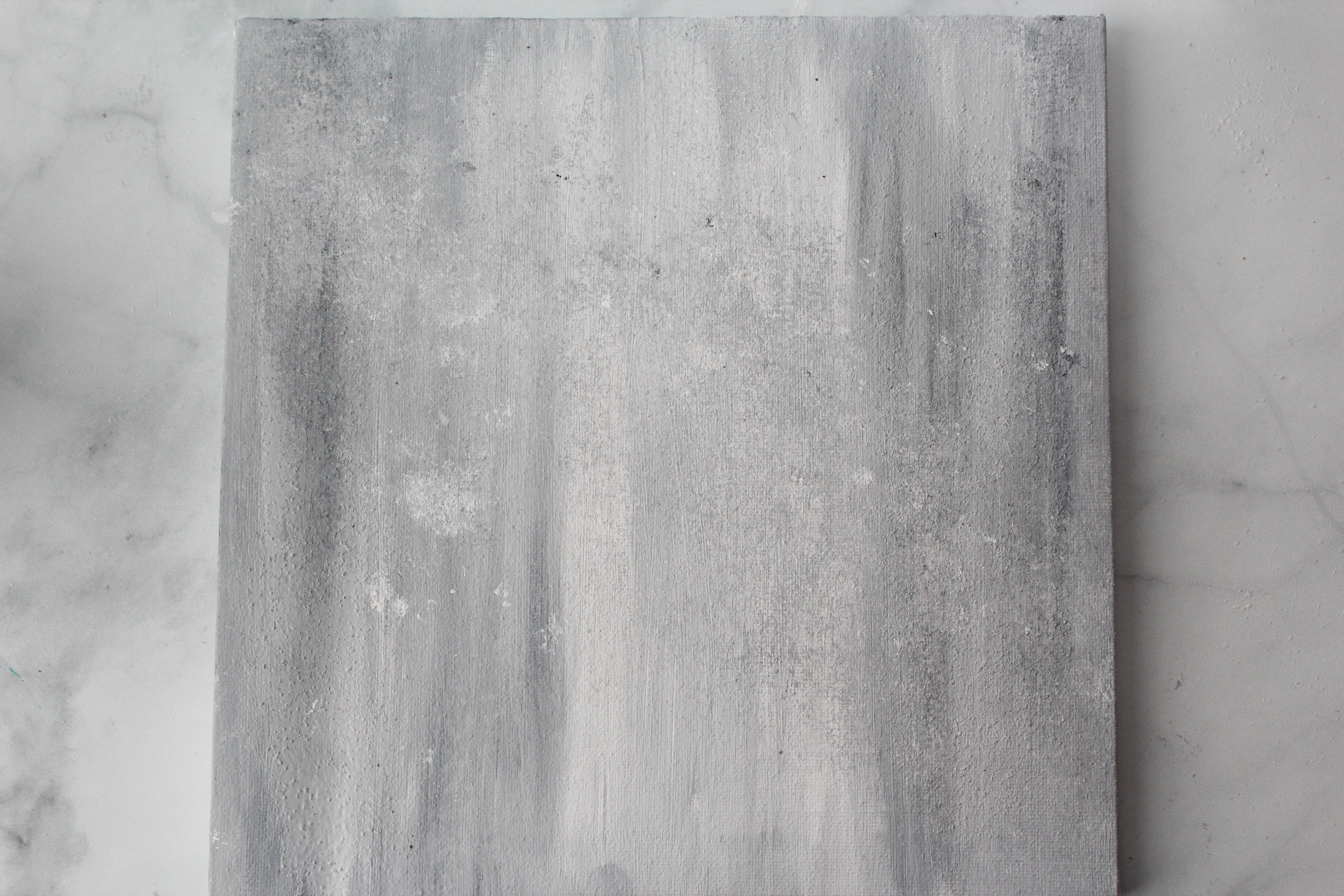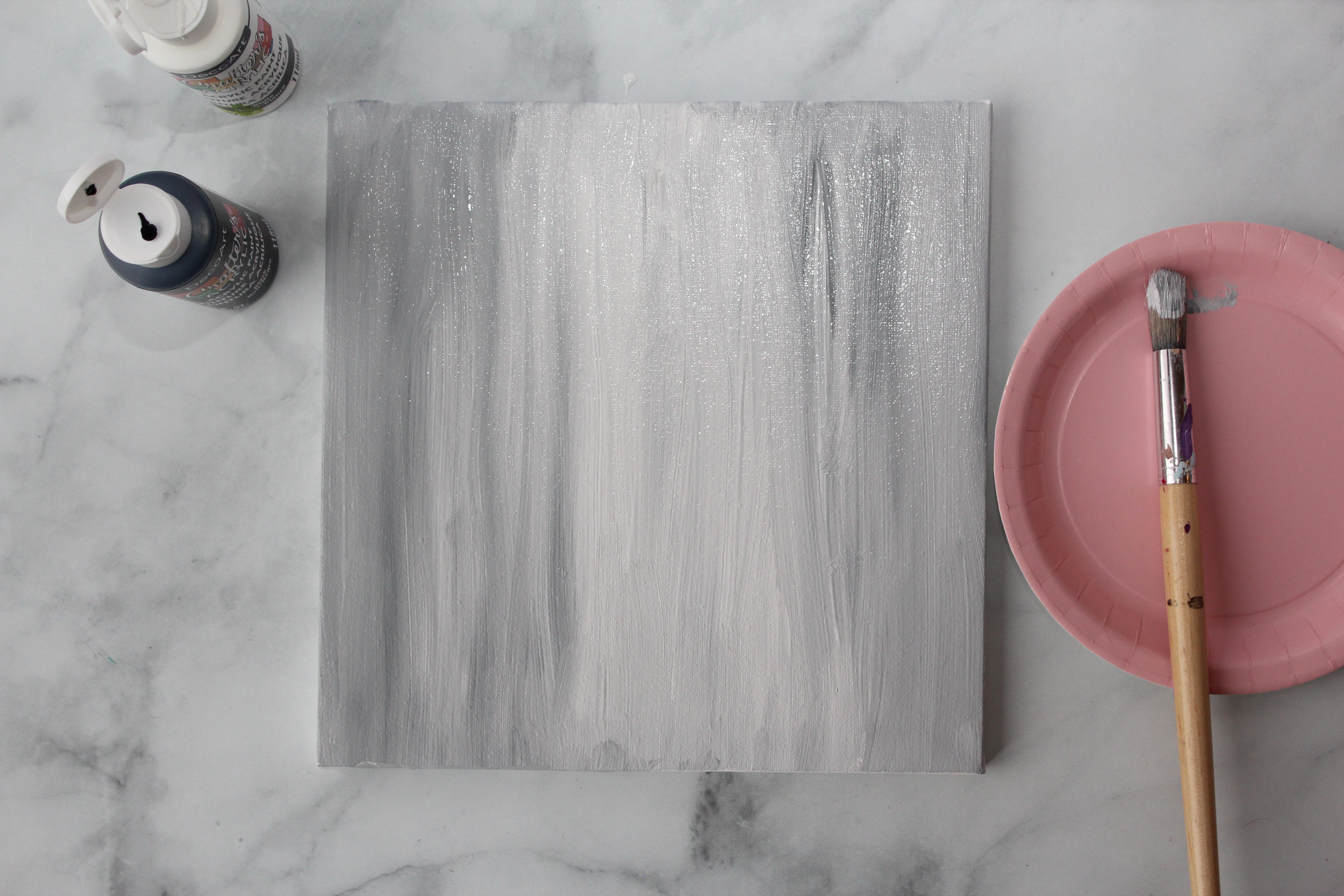 Using a medium size paintbrush, use long vertical strokes to blend your white and black paint.