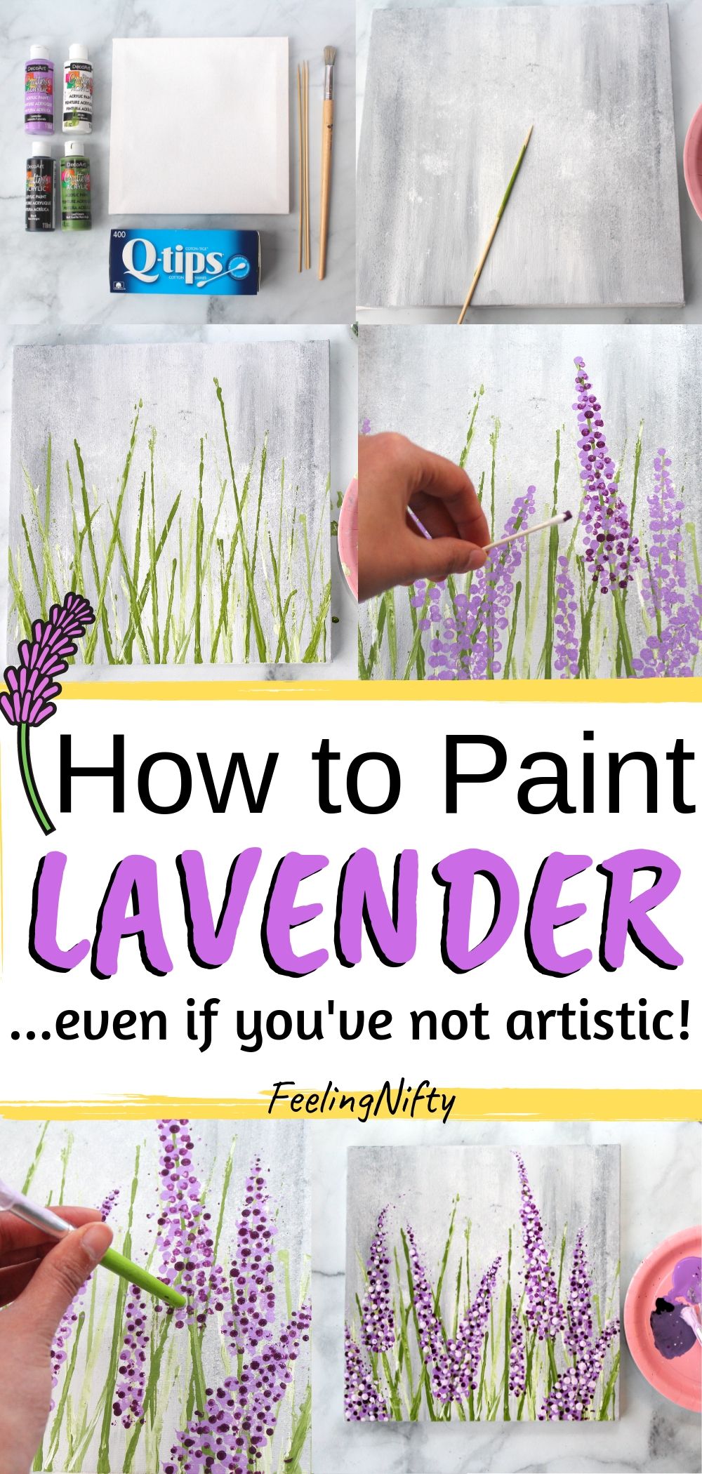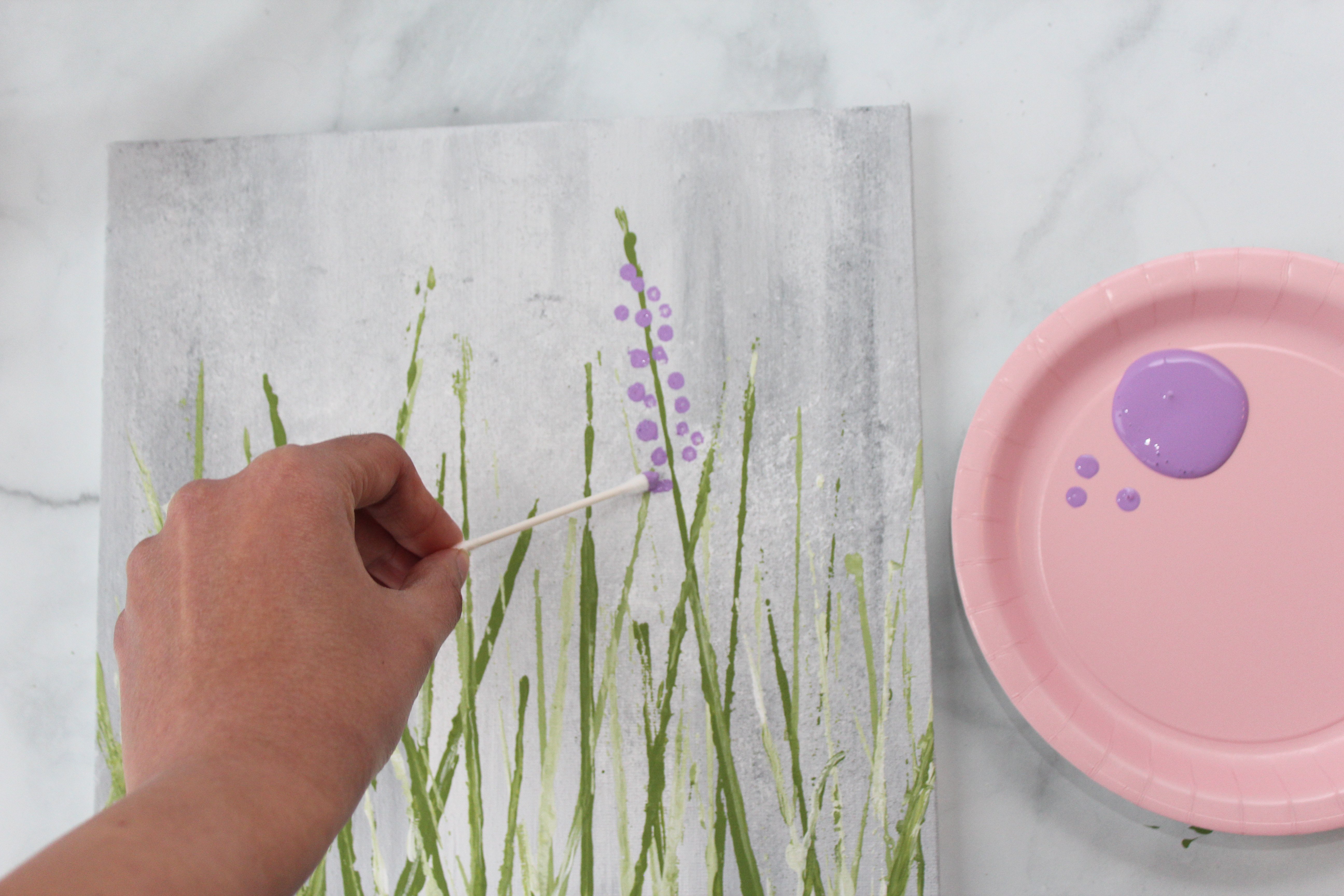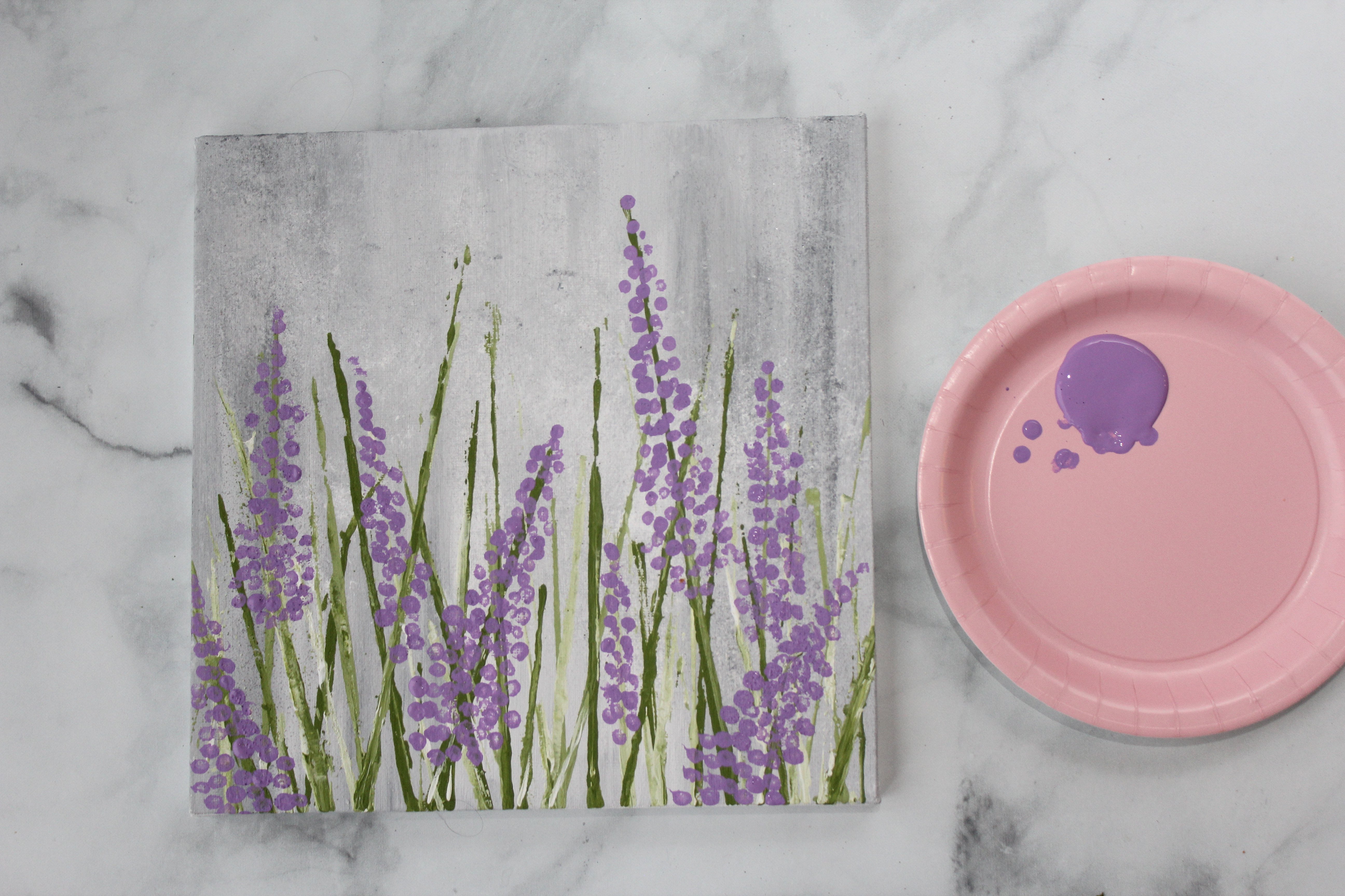 Learn how to paint lavender in acrylics using basic acrylic paints and cotton swabs!