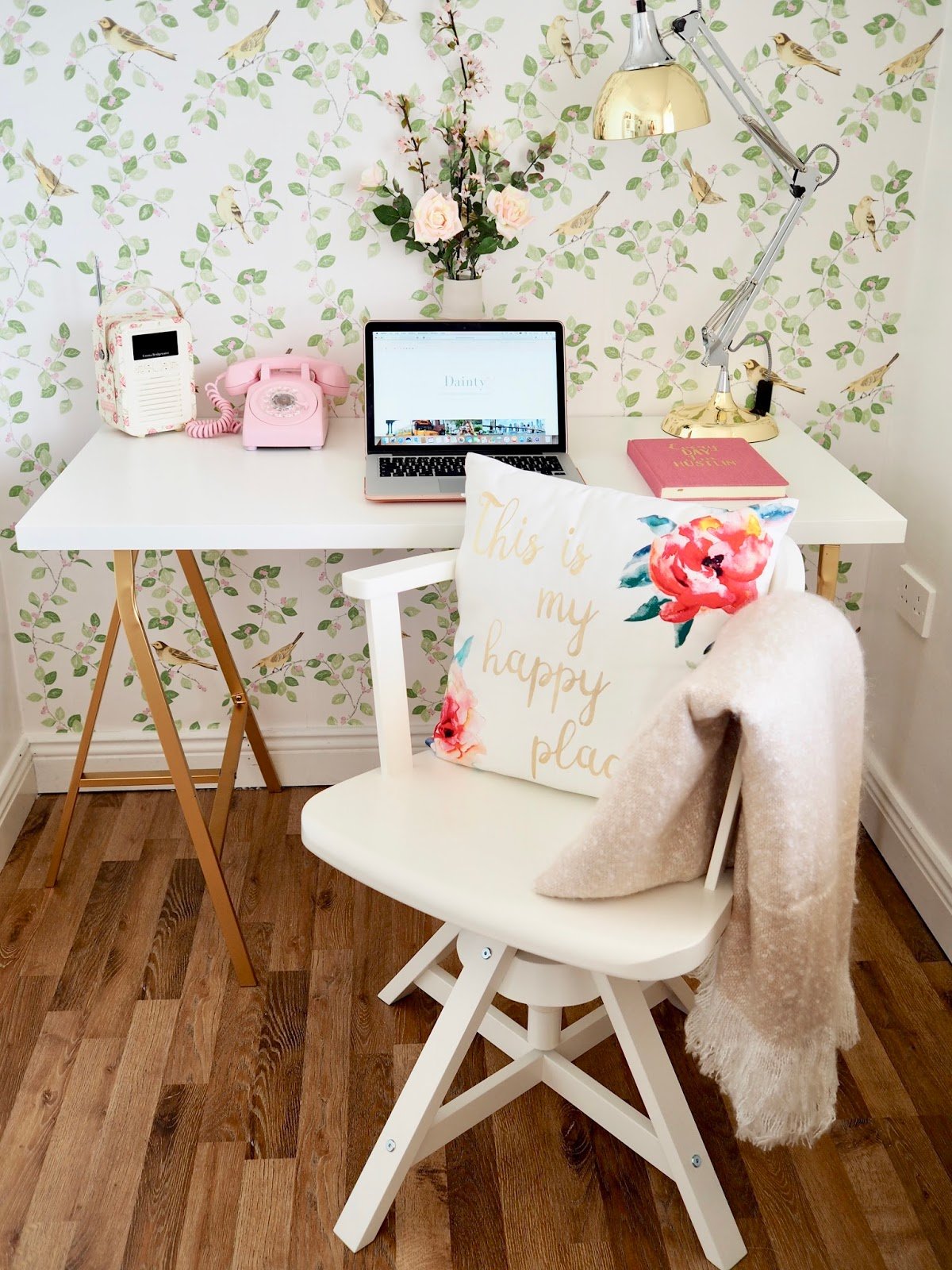 This chic and cute parisienne inspired desk is lovely! This blogger used gold spray paint to make this Ikea desk hack in gold. This is probably one of the best desk from Ikea for small spaces, I’ve seen! Source