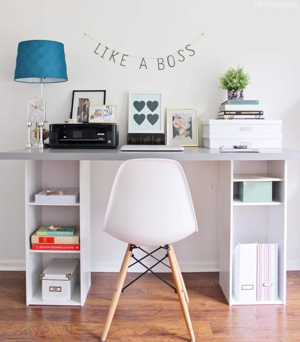 In the list of desk hacks below, I’ve tried to include as many different types of desks (for small spaces, standing desk, corner desks, craft desks, etc..) that I could- because I want you to find the perfect workspace too.
