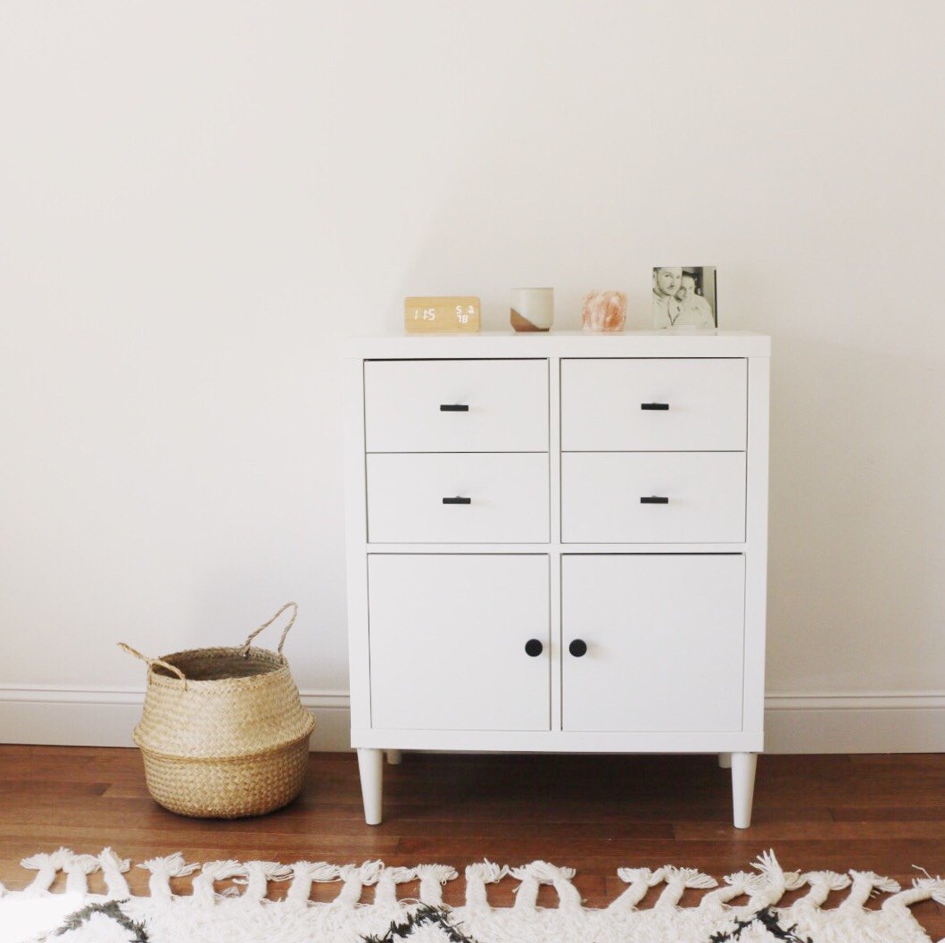 Love the feminine touches to this Kallax dresser hack. Lovely in any bedroom or would look great anywhere else in the home too!