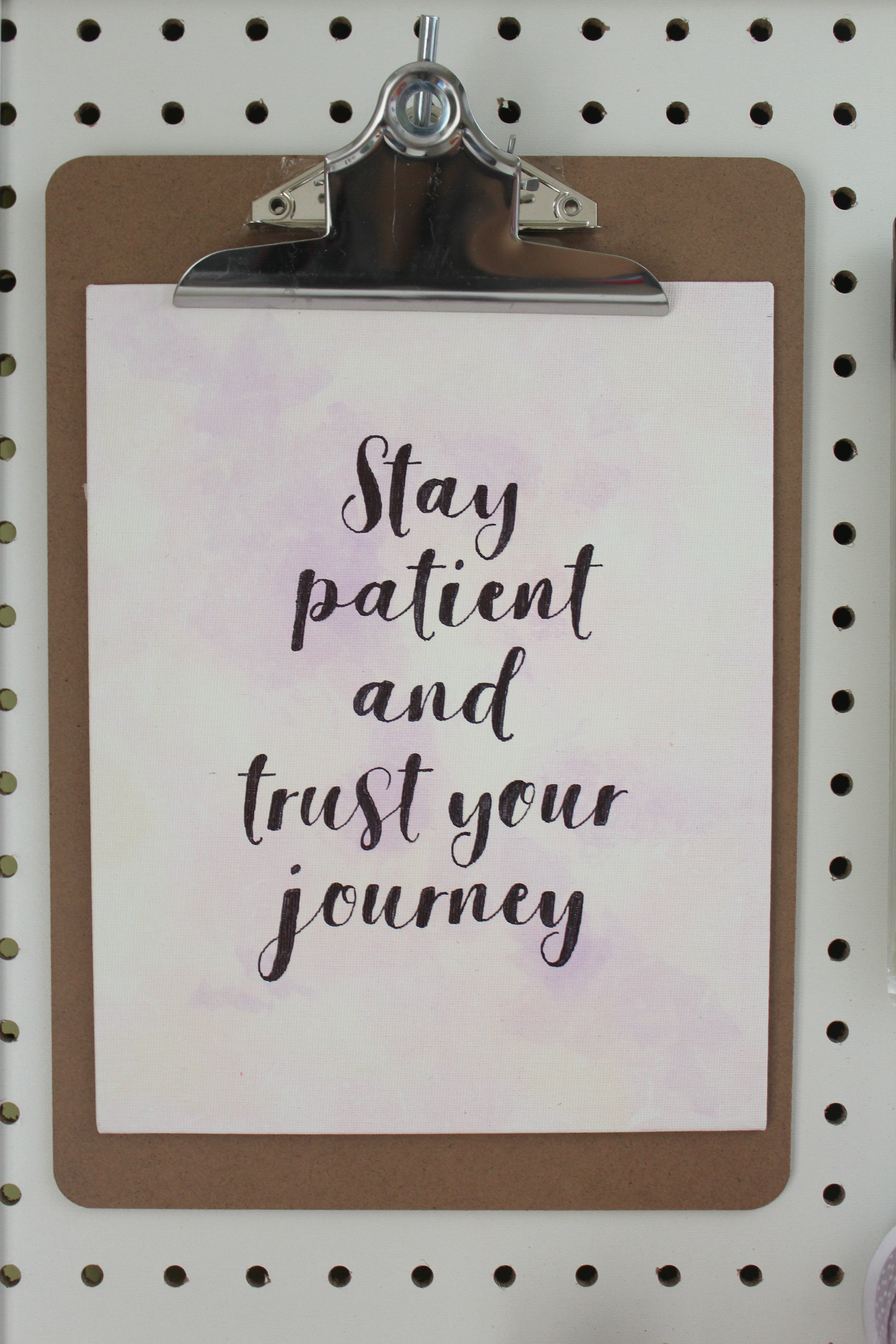 I added a simple clipboard as both a decorative item, and if I even need to hand a paper to dry or hang in general. If you want to learn an easy way to make handletter fonts like in the quote art I created below (without needing to learn any hand lettering skills, check out this post.
