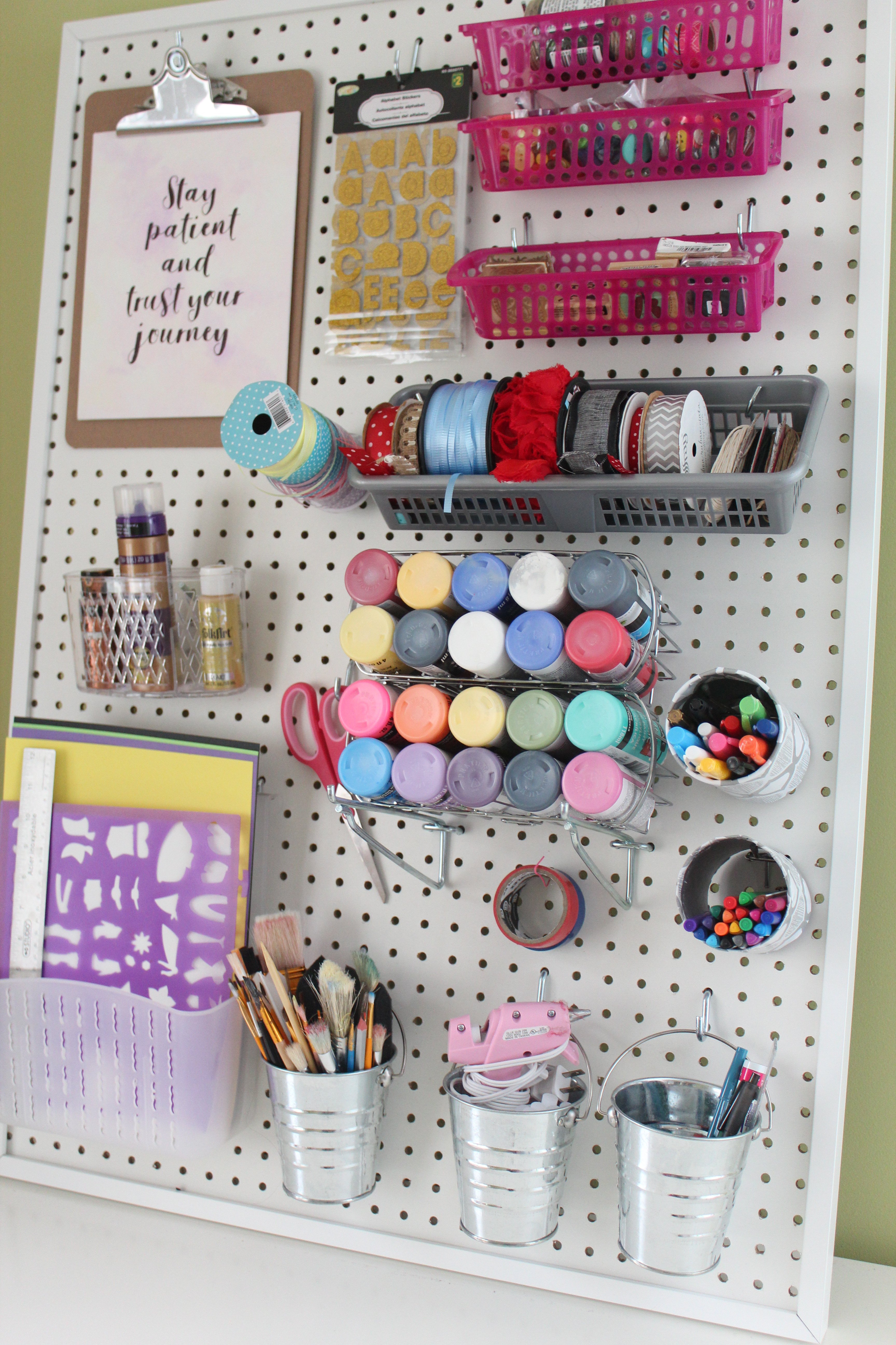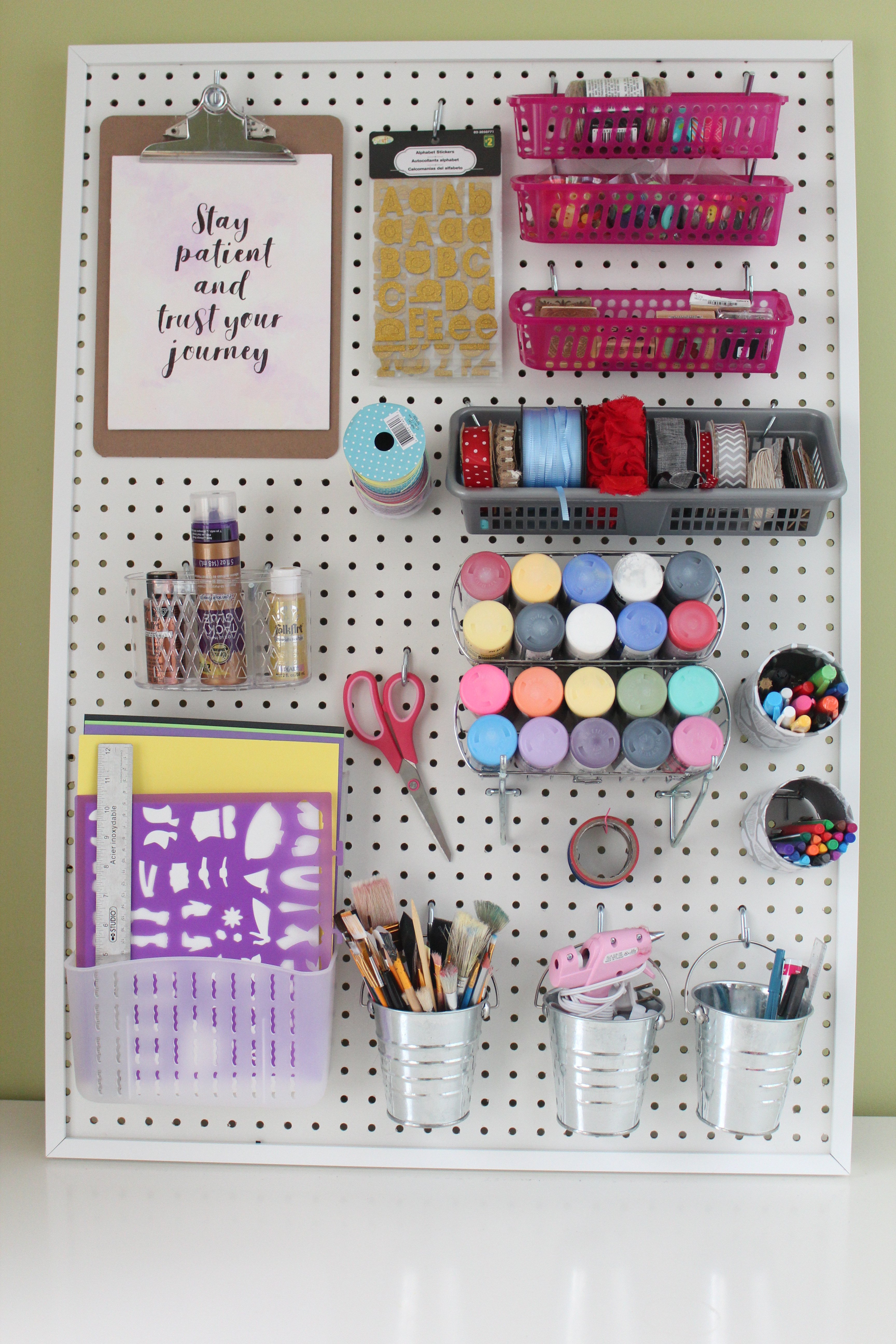 The sky is the limit in terms of the type of craft supplies you can store in these Pegboards. But for examples sake here are some craft pegboard ideas: